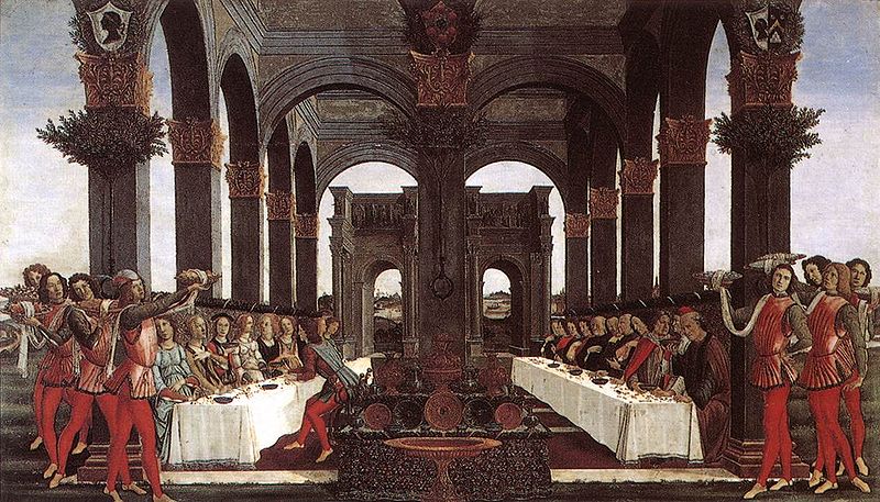 As ilustrações seguintes reproduzem O Banquete de Casamento (Nastagio Degli Onesti, de 1483), do pintor florentino Sandro Botticelli (1445-1510). São quatro pinturas realizadas em torno de 1483, dando visualidade a uma das novelas do Decameron (1348-1353) de Giovanni Boccaccio (1313-1375). A obra foi encomendada por Lorenzo il Magnifico de Medici (1449-1492) para o casamento de seu sobrinho, Gianozzo Pucci, com Lucrecia Bini, em 1483.
